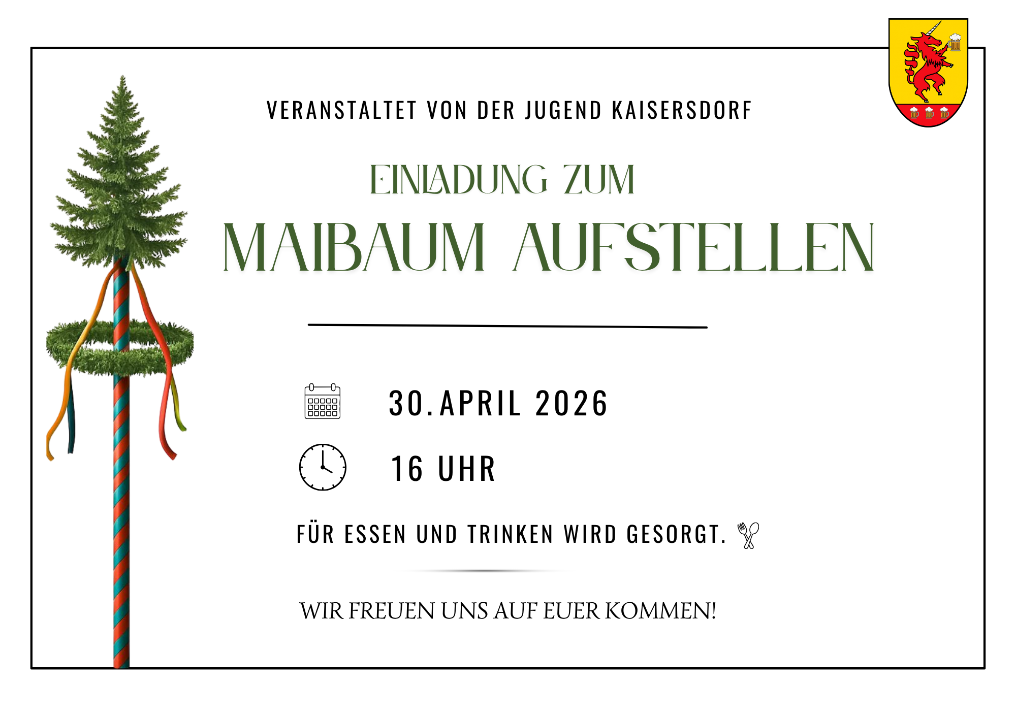 ACHTUNG: Begrenzte Teilnehmerzahl - Anmeldung im Gemeindeamt Kaisersdorf bis spätestens 08.05.2026 - Tel. 02617/2311, E-Mail: Diese E-Mail-Adresse ist vor Spambots geschützt! Zur Anzeige muss JavaScript eingeschaltet sein!.